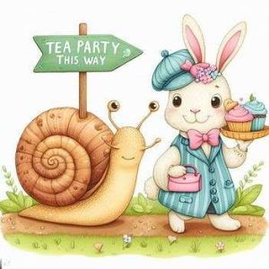 Danny and Rosie strolled down the path to a charming garden where a delightful tea party was arranged. The sun painted the surroundings with a