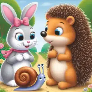 One day during their explorations, Danny the snail and Rosie the rabbit came across a prickly hedgehog named Harry. Harry was curled up into a