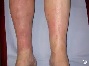 What is stasis dermatitis? This is a common type of Eczema that develops in people who have poor blood flow. Because poor blood flow usually develops in the lower legs, stasis dermatitis often appears near your ankles. Stasis dermatitis can occur in other areas of the body aside from the lower legs, but that’s rare. Click here for our recommended product.